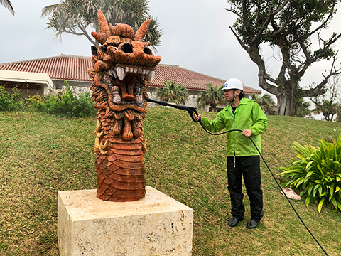 | 平成31年2月 | 沖縄県 | 万国津梁館龍柱&シーサー改修工事 | 龍柱&シーサー、琉球石灰岩張り台座 | 50㎡ |