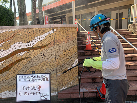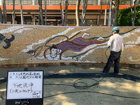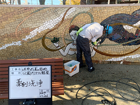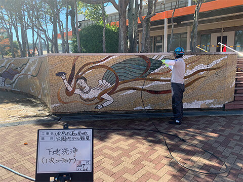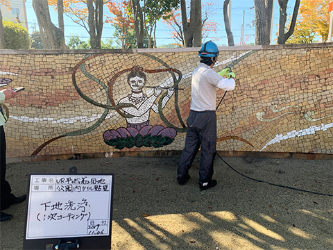 | 令和元年11月 | 奈良県 | UR高の原公園内壁面修繕工事 | 壁画タイル全面、タイル張り階段部 | 200㎡ |