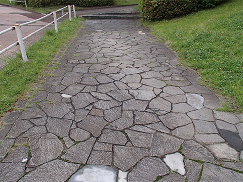 | 平成26年10月 | 東京都 | UR館が丘団地 運動公園施設周辺整備(Ⅰ期) | 鉄平石、擬石平板、コンクリート立上り、間知石 | 1500㎡ |