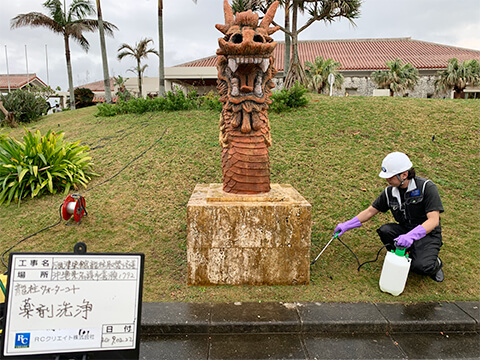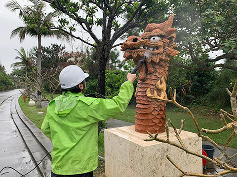 | 平成31年2月 | 沖縄県 | 万国津梁館龍柱&シーサー改修工事 | 龍柱&シーサー、琉球石灰岩張り台座 | 50㎡ |